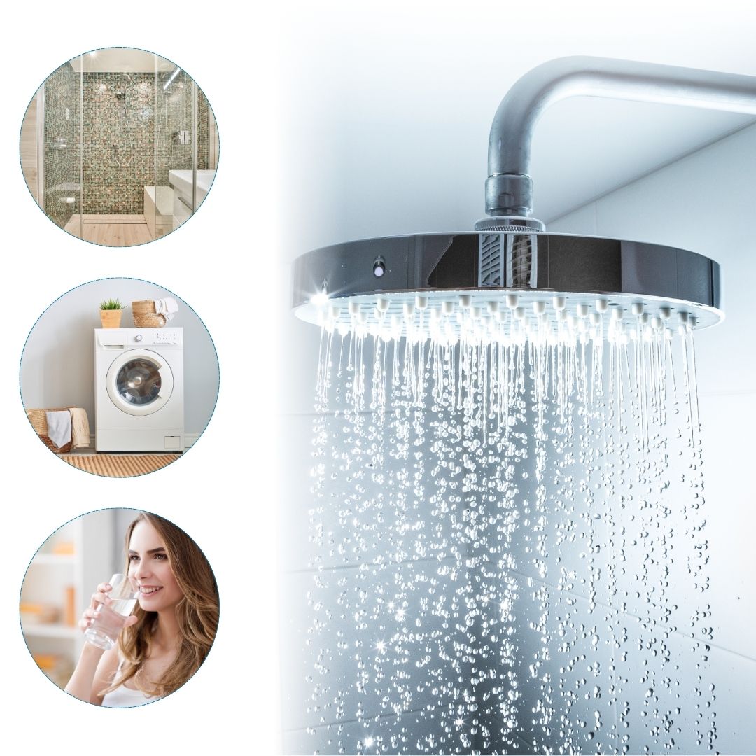O sistema converte cálcio e magnésio em cristais inativos, evitando depósitos nos canos e superfícies.