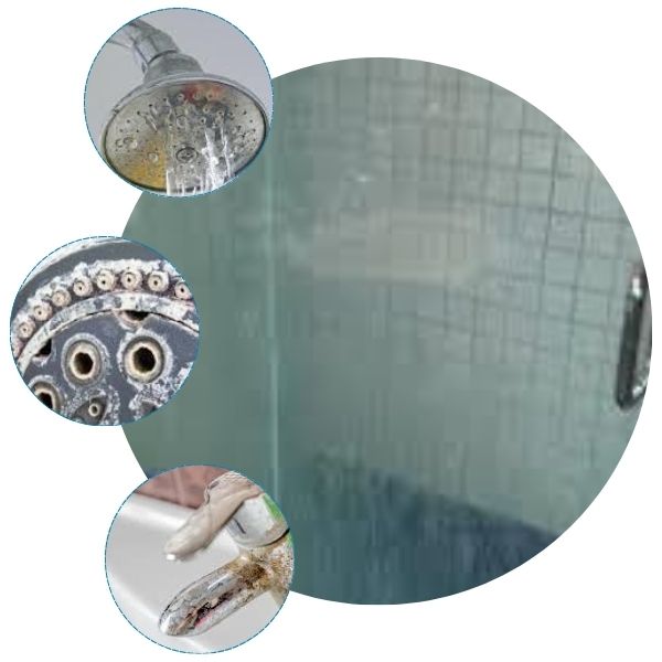 Se notar manchas em vidros, torneiras e baixa vazão nos chuveiros, sua água pode estar carregada de minerais.